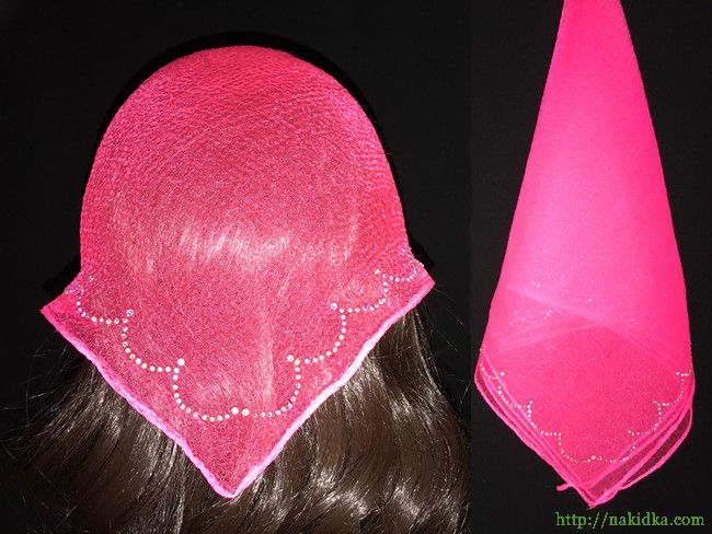 | Ярко-розовая нейлоновая косынка с наклеенным блестящим волнистым узором |