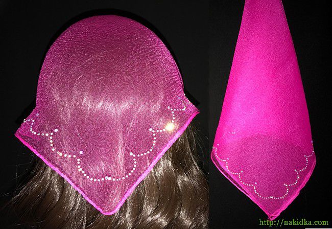 | Ярко-малиновая нейлоновая косынка с наклеенным блестящим волнистым узором |