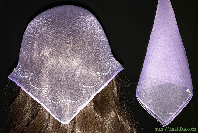 | Светло-фиолетовая нейлоновая косынка с наклеенным блестящим волнистым узором |