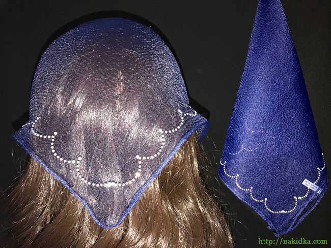 | Темно-синяя нейлоновая косынка с наклеенным блестящим волнистым узором |