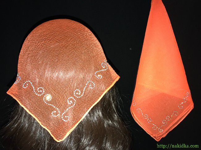 | Ярко-оранжевая нейлоновая косынка с наклеенным блестящим завитым узором |