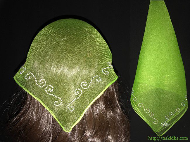 | Светло-оливковая нейлоновая косынка с наклеенным блестящим завитым узором |