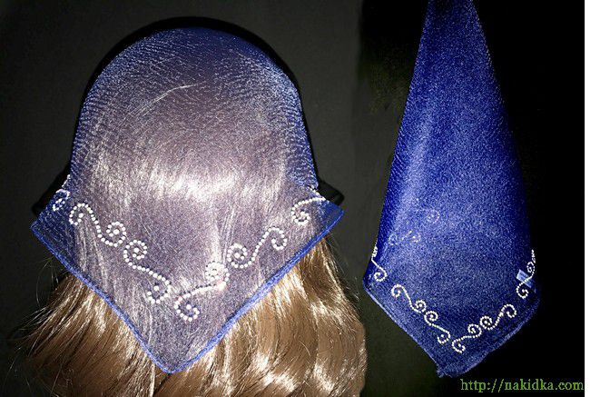 | Темно-синяя нейлоновая косынка с наклеенным блестящим завитым узором |