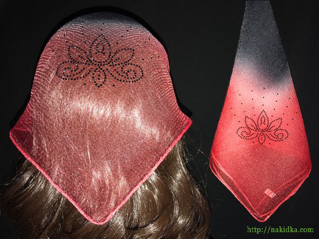 | Черная с красными краями нейлоновая косынка с наклеенным черным узором |