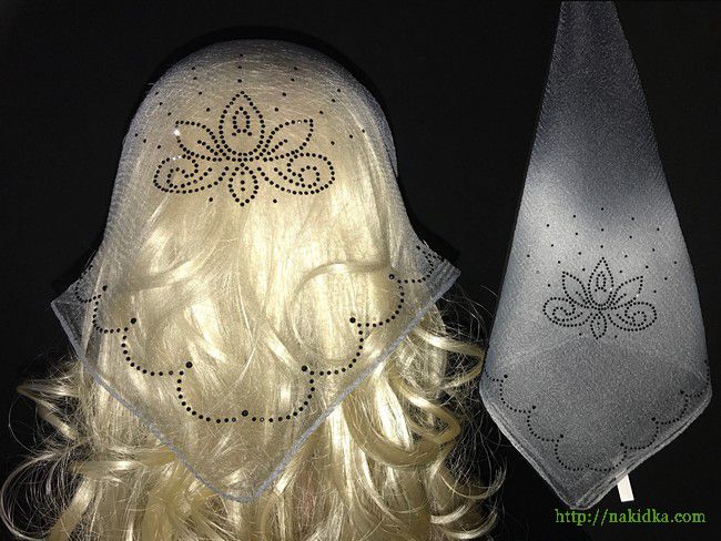 | Черная с серыми краями нейлоновая косынка с наклеенными черными узорами |
