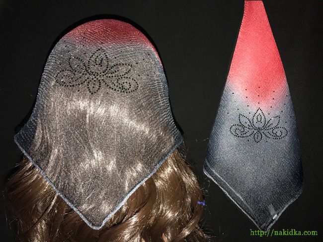 | Красная с черными краями нейлоновая косынка с наклеенным черным узором |