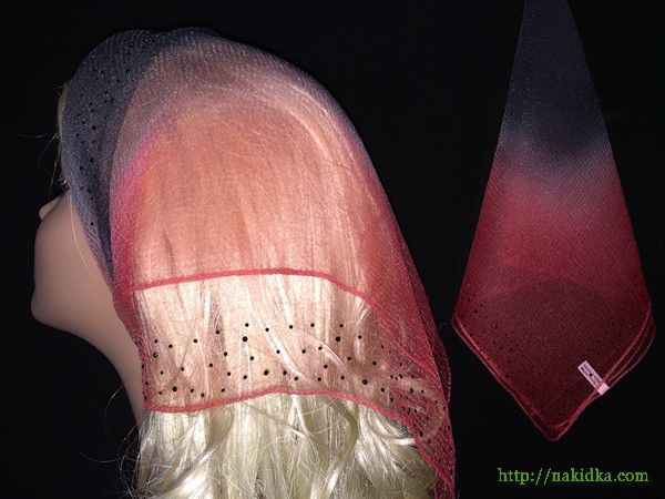 | Черная с красным двутонная нейлоновая косынка с наклееным черным узором и камушками по ободку для подворачивания |