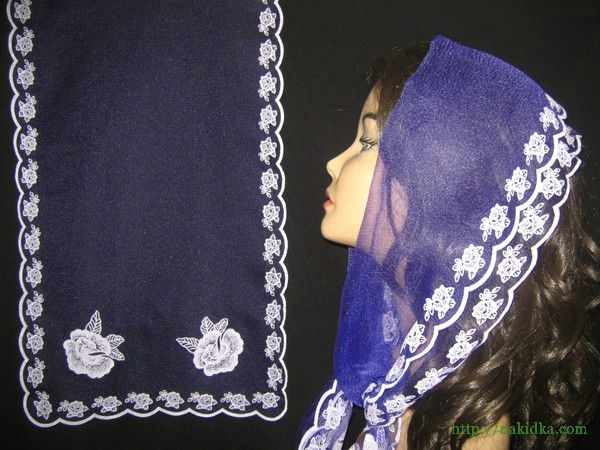 | Синe-фиолетовый однотонный нейлоновый шарф с рисунком и белым ободком |