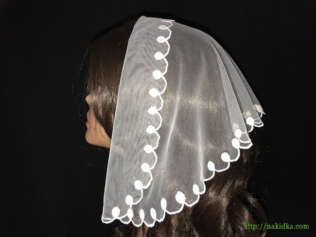 | Белая легкая фатиновая накидка с белым вышитым узором |
