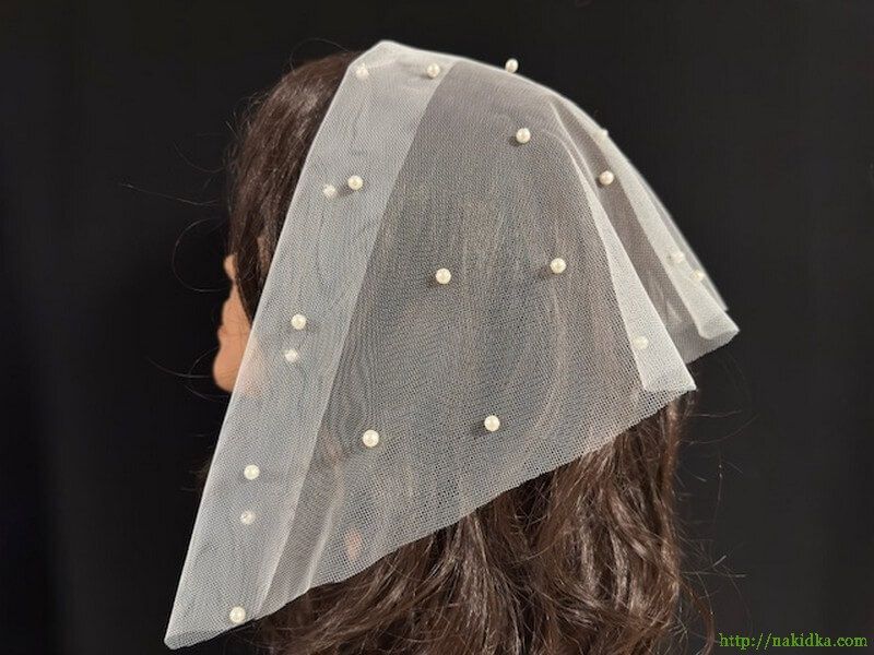 | Бeлая фатиновая накидка в белые жемчужинки необметаная по краям |