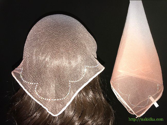 | Белая с персиковым утененная косынка с наклеенным волнистым узорoм по краям |