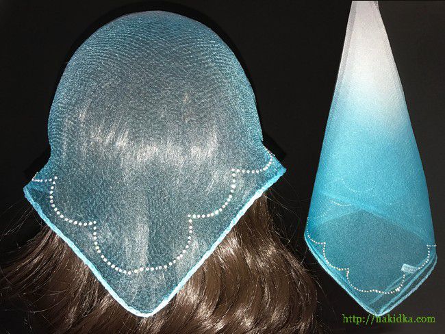 | Белая с бирюзовым утененная косынка с наклеенным волнистым узорoм по краям |