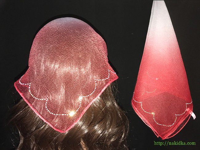 | Белая с красным утененная косынка с наклеенным волнистым узорoм по краям |