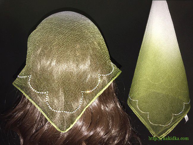 | Белая с оливковым утененная косынка с наклеенным волнистым узорoм по краям |