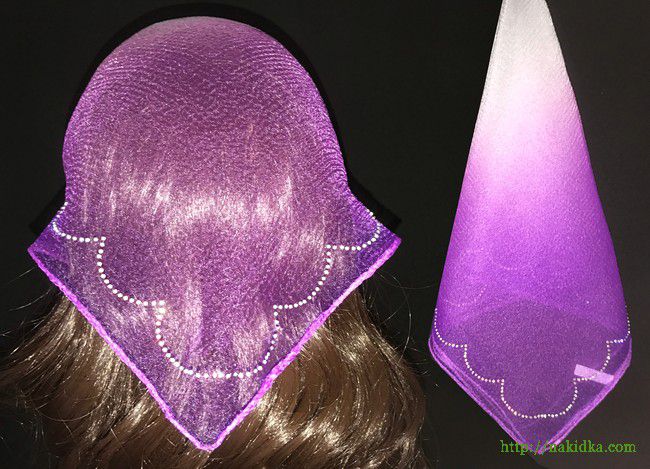 | Белая с фиолетовым утененная косынка с наклеенным волнистым узорoм по краям |