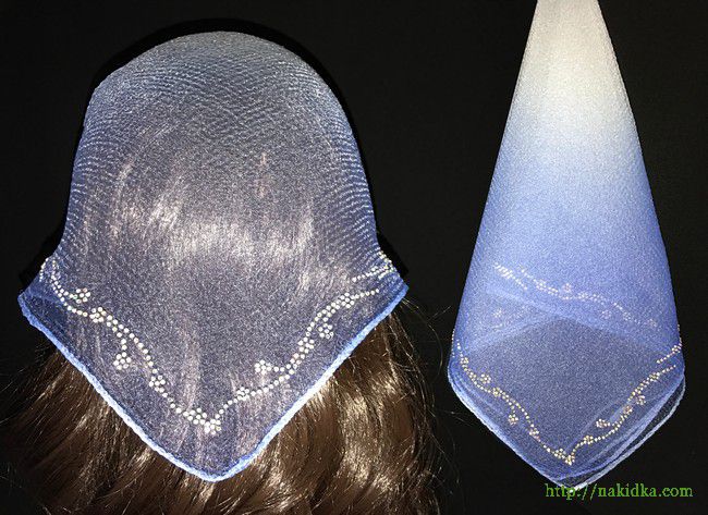 | Белая с голубым утененная косынка с наклеенным узором веточкой по краям |