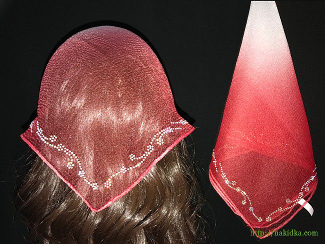 | Белая с красным утененная косынка с наклеенным узором веточкой по краям |