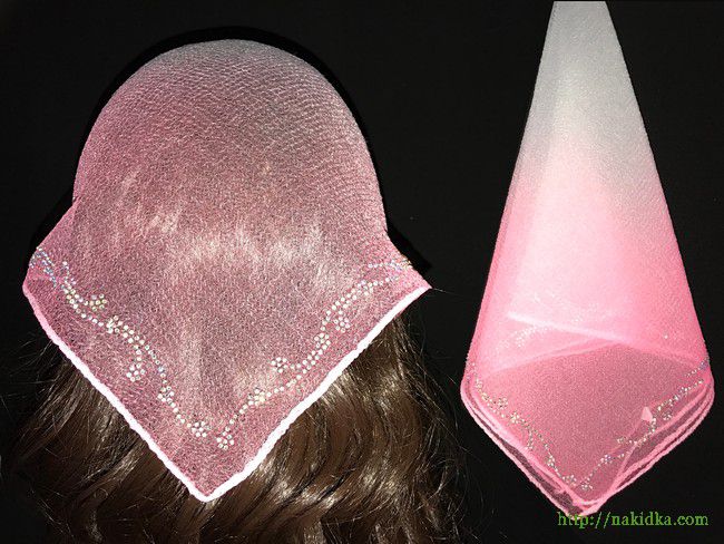 | Белая с розовым утененная косынка с наклеенным узором веточкой по краям |