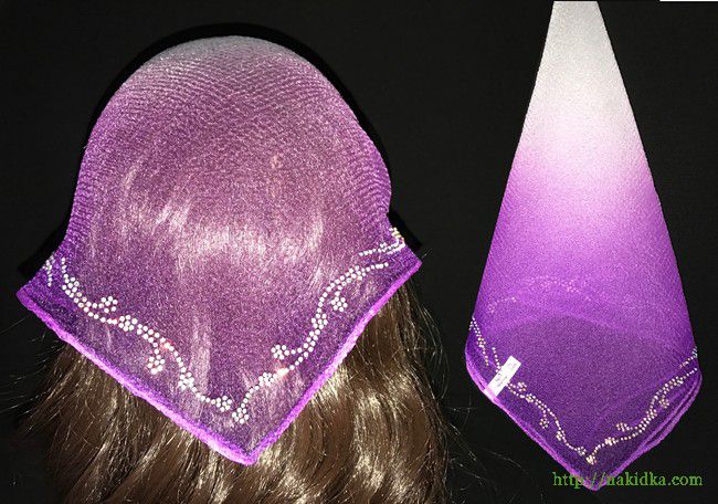 | Белая с фиолетовым утененная косынка с наклеенным узором веточкой по краям |