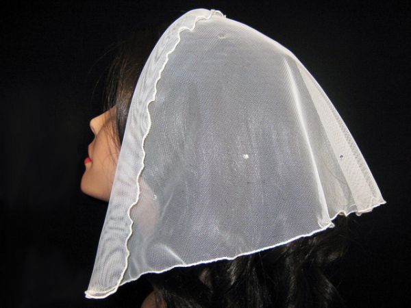 | Белая фатиновая накидка с наклееными блестящими камушками и волнистым ободком |