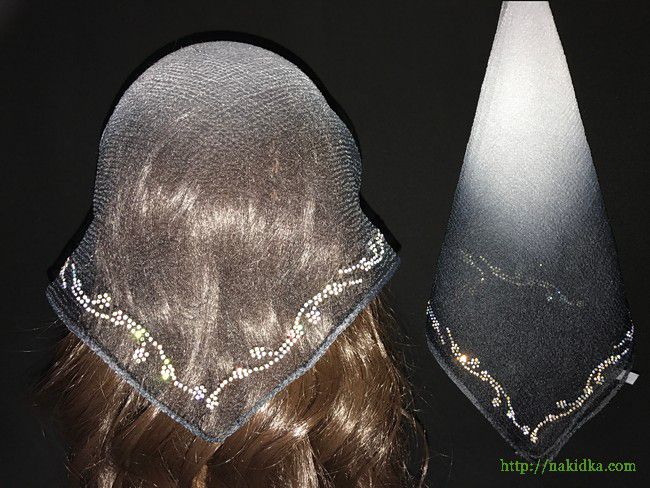 | Белая с черным утененная косынка с наклеенным узором веточкой по краям |