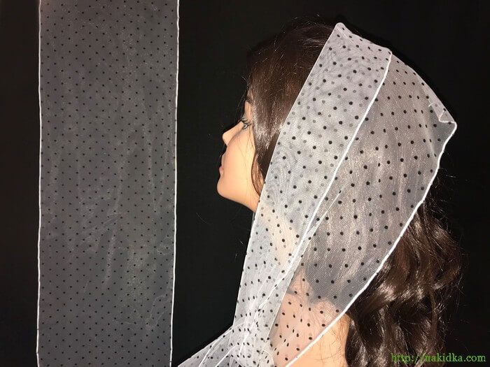 | Белый легкий фатиновый шарф с мелкими черными горошками |