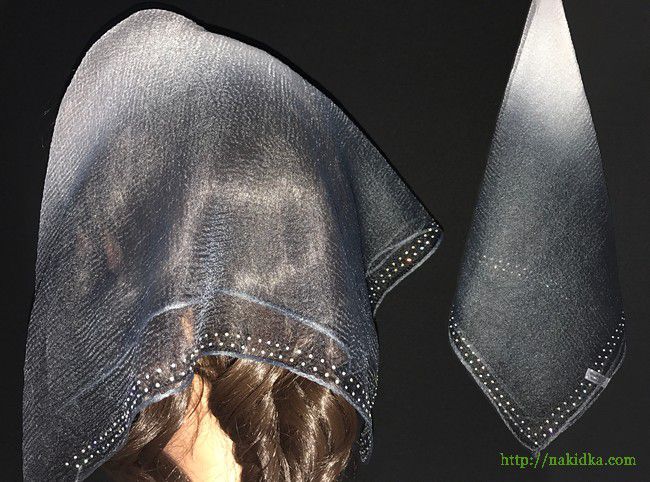 | Белая с черным нейлоновая косынка с наклеенными блестящими камушками |