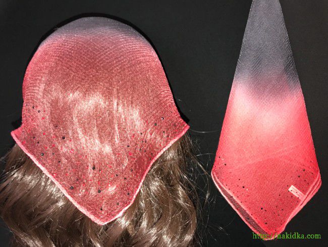 | Черная с красным с нейлоновая косынка с наклеенными красными и черная камушками |