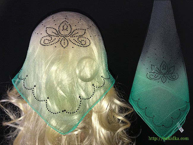 | Черная с зелеными краями нейлоновая косынка с наклеенными черными узорами |