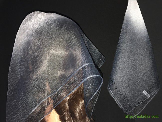| Белая с черным нейлоновая косынка с наклеенным черным узором |