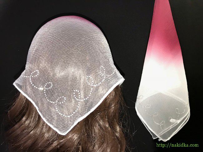 | Красная с белым двутонная нейлоновая косынка с наклеенным блестящим узором |