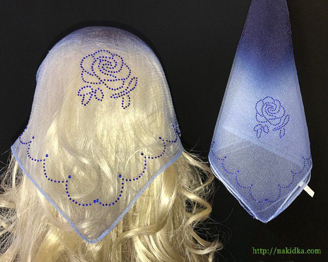 | Синяя с голубым двухтонная косынка с наклеенным синим узорoм розочкой и синим волнистым узором по краю |