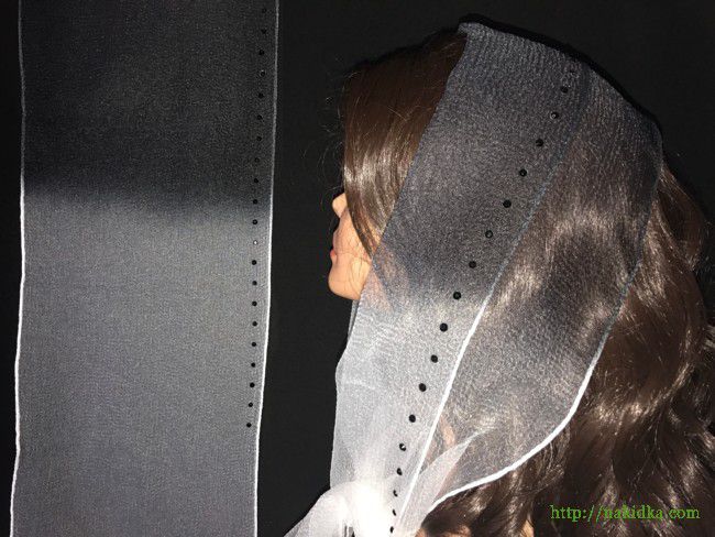 | Утененный черный с белым нейлоновый шарф с наклеенными черными камушками |