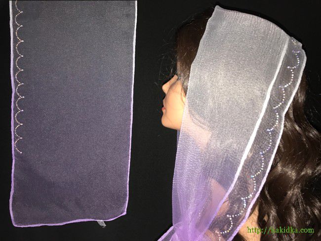 | Утененный белый со светло-фиолетовым нейлоновый шарф с наклеенным перламутровым узором |