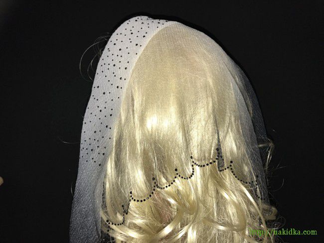 | Белая с черным двухтонная косынка с черными узорами на подвернутом крае и на волнистом ободке |