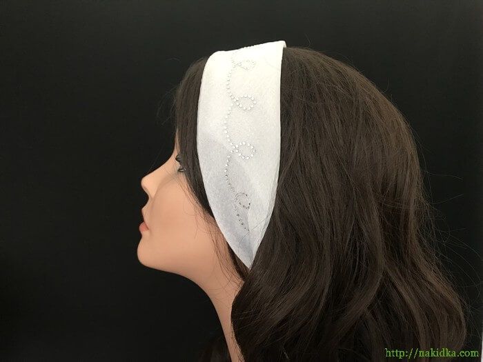 | Белый однотонный нейлоновый шарф-полоска с наклеенным блестящим узором |