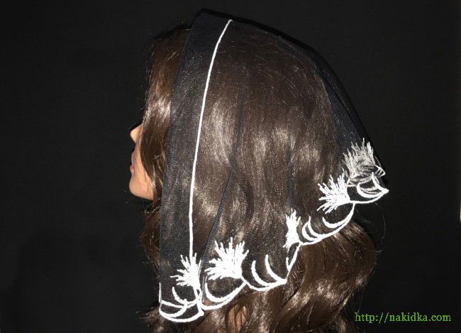 Черная легкая фатиновая накидка с белым вышитым узором