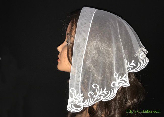| Белая легкая фатиновая накидка с белым вышитым узором |