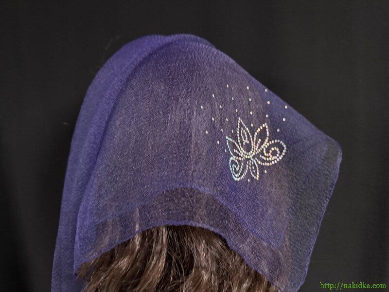 | Чернильно-фиолетовая однотонная косынка с наклеенным блестящим узором |