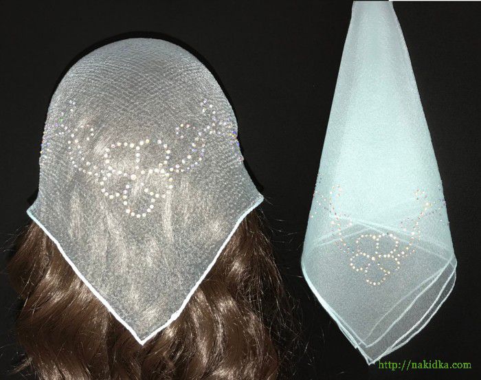 | Мятная однотонная нейлоновая косынка с наклеенным блестящим узором |
