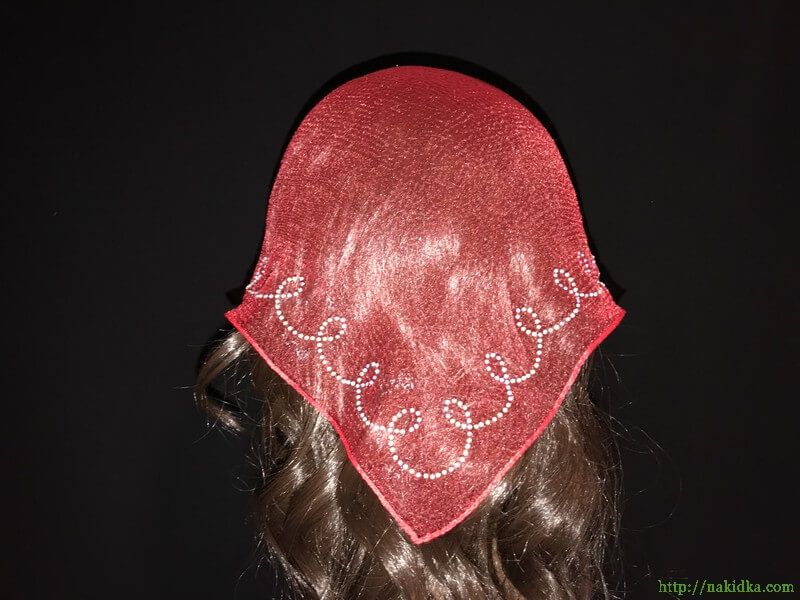 | Красная однотонная нейлоновая косынка с наклеенным блестящим узором |