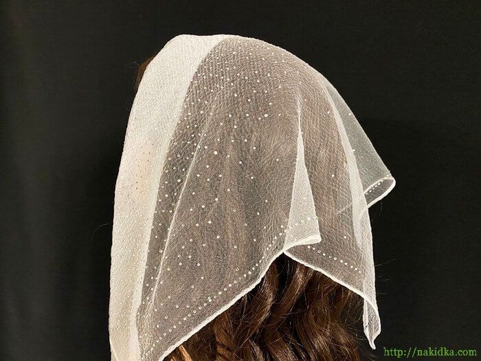 | Белая косынка с блестящими камушками и наклееным узором на ободке |