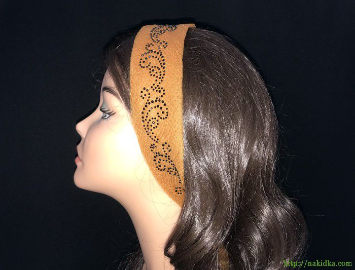 | Светло-коричневый однотонный нейлоновый шарф-полоска с наклеенным черным узором |