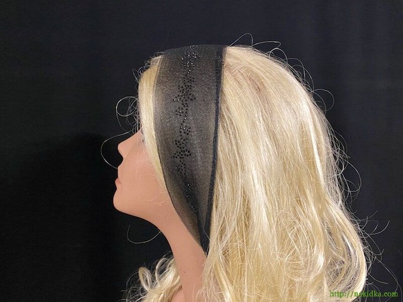 | Черный однотонный нейлоновый шарф-полоска с наклеенны черным узором |