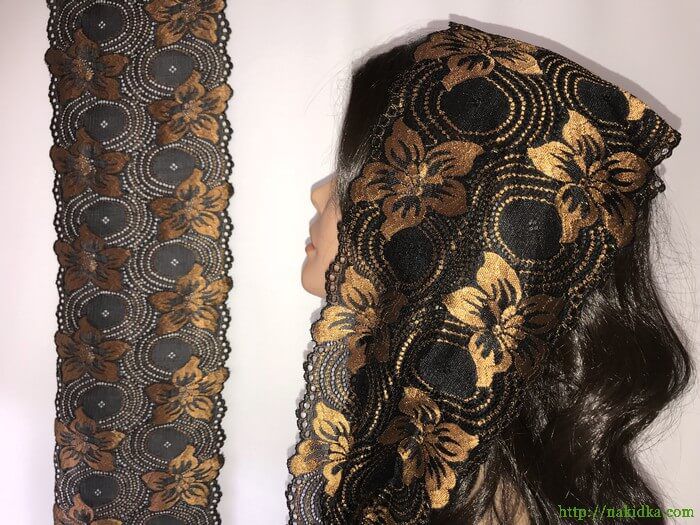 | Светло-коричневый с черным стрейчевый гипюровый шарф с узором |