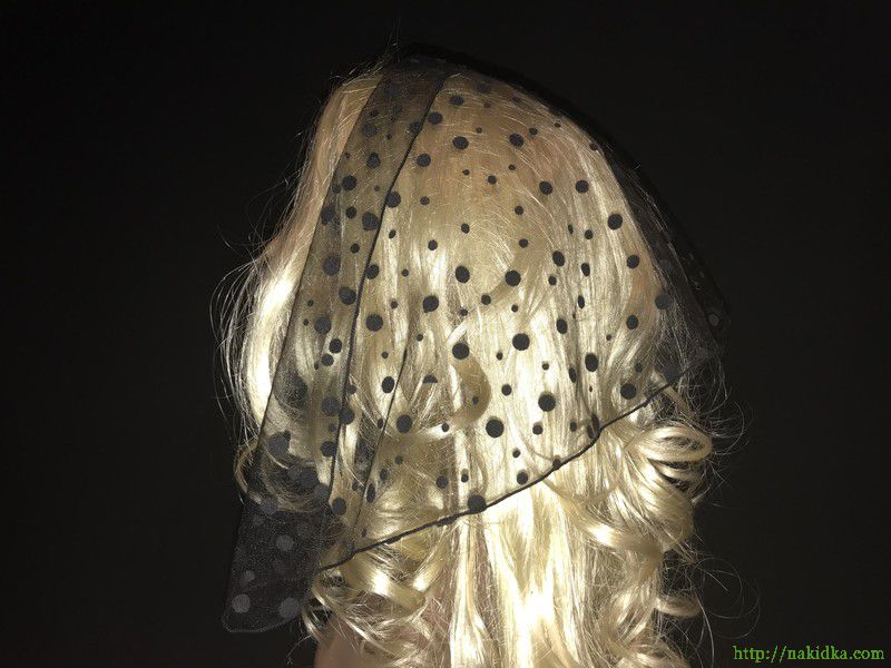 : Черная легкая фатиновая накидка с черными горошками