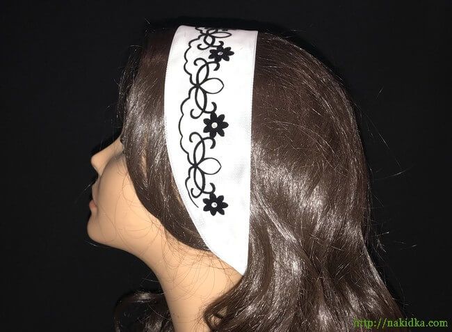| Белый однотонный фатиновый шарф-полоска с наклеенным вельветовым узором |