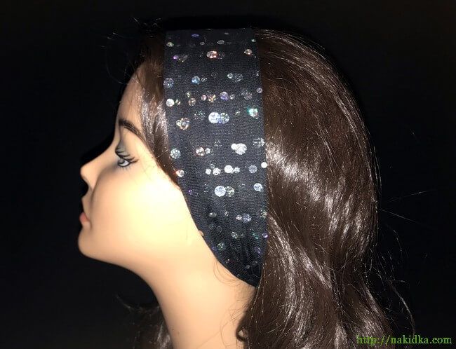 | Черный однотонный фатиновый шарф-полоска с блестками |