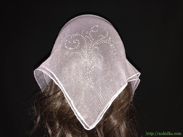 | Светло-сиреневая однотонная нейлоновая косынка с наклеенным блестящим узором |