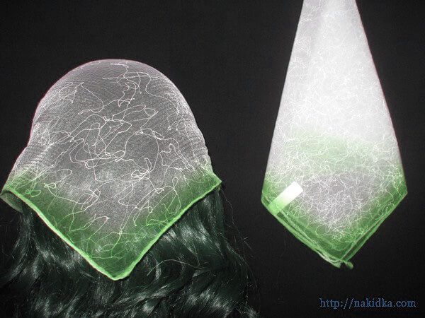 | Утененная нейлоновая косынка с белой серединой и светло-зелеными краями с паутинкой |